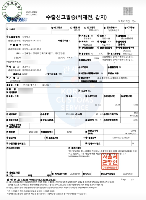 수출신고필증 서류
